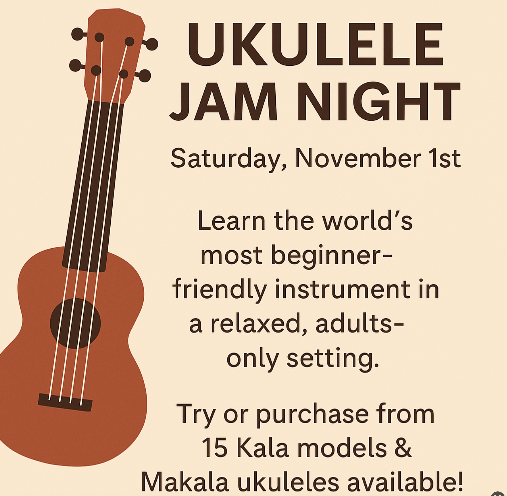 ✨ Join us for an uplifting Ukulele Jam Night designed just for grown-ups — a relaxed evening of laughter, learning, and connection through music. Whether you’re brand new or already strumming, you’ll feel right at home.